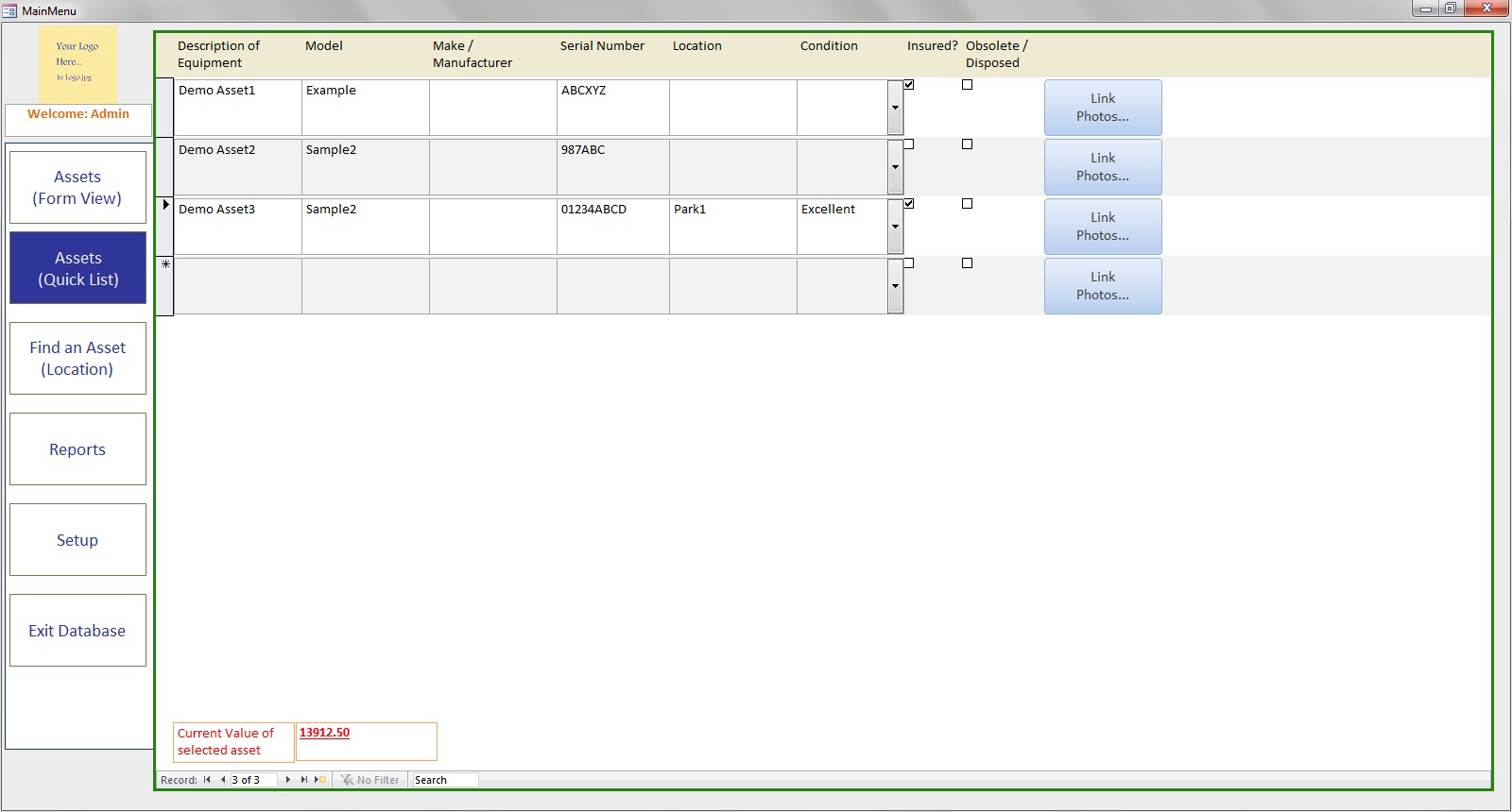 ✓ Link to and display photos of an asset;