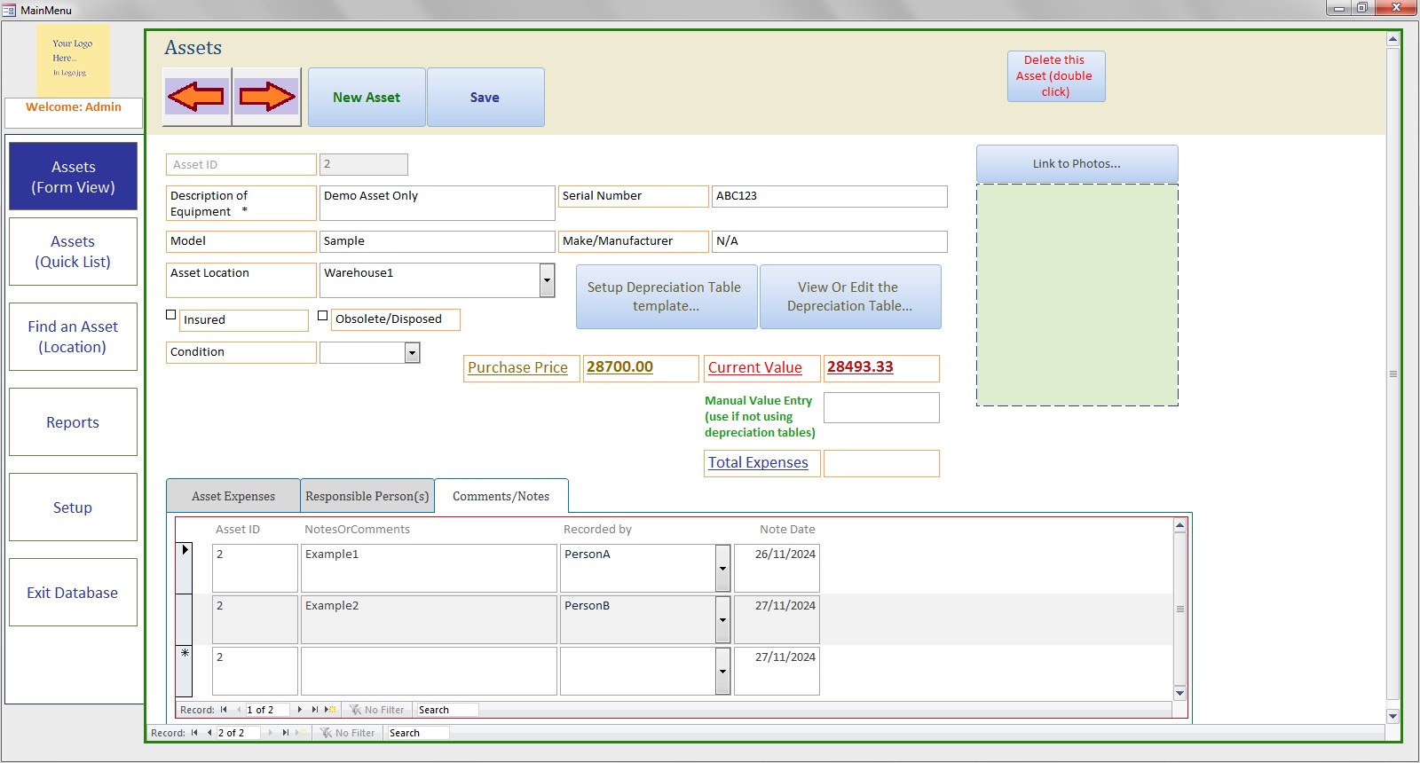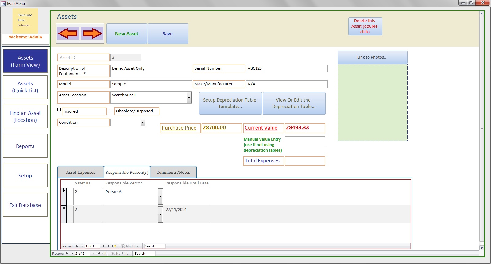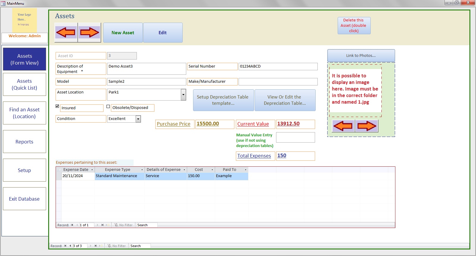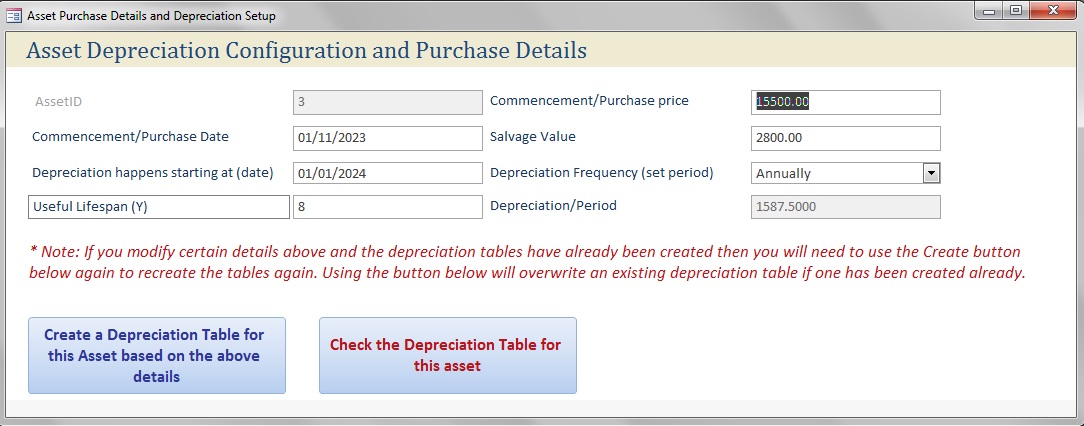Asset Manager database | Setup straight-line devaluation | Track your asset expenses