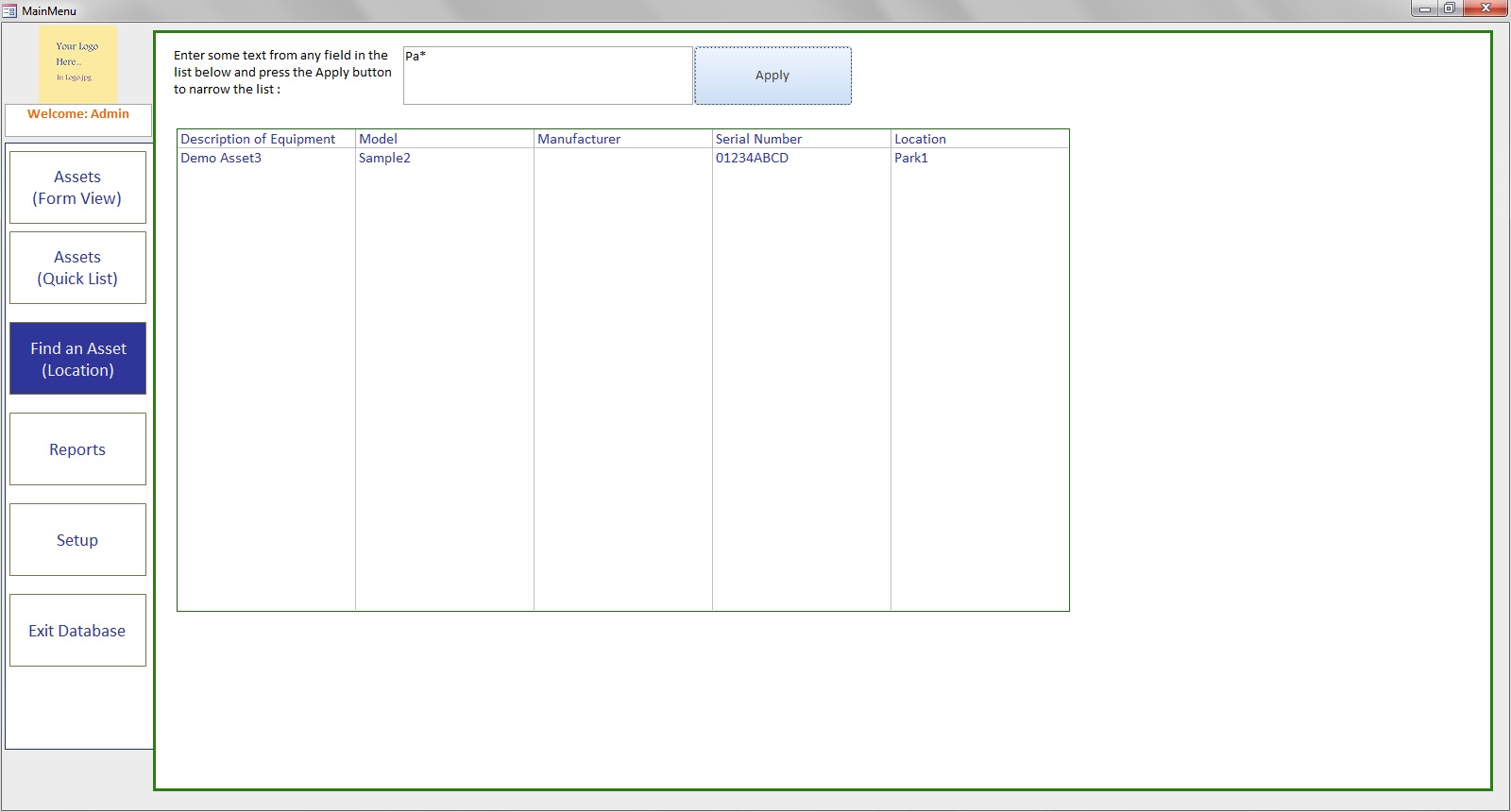 ✓ You can find an assets location using the Find form;